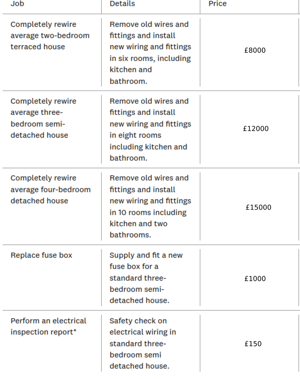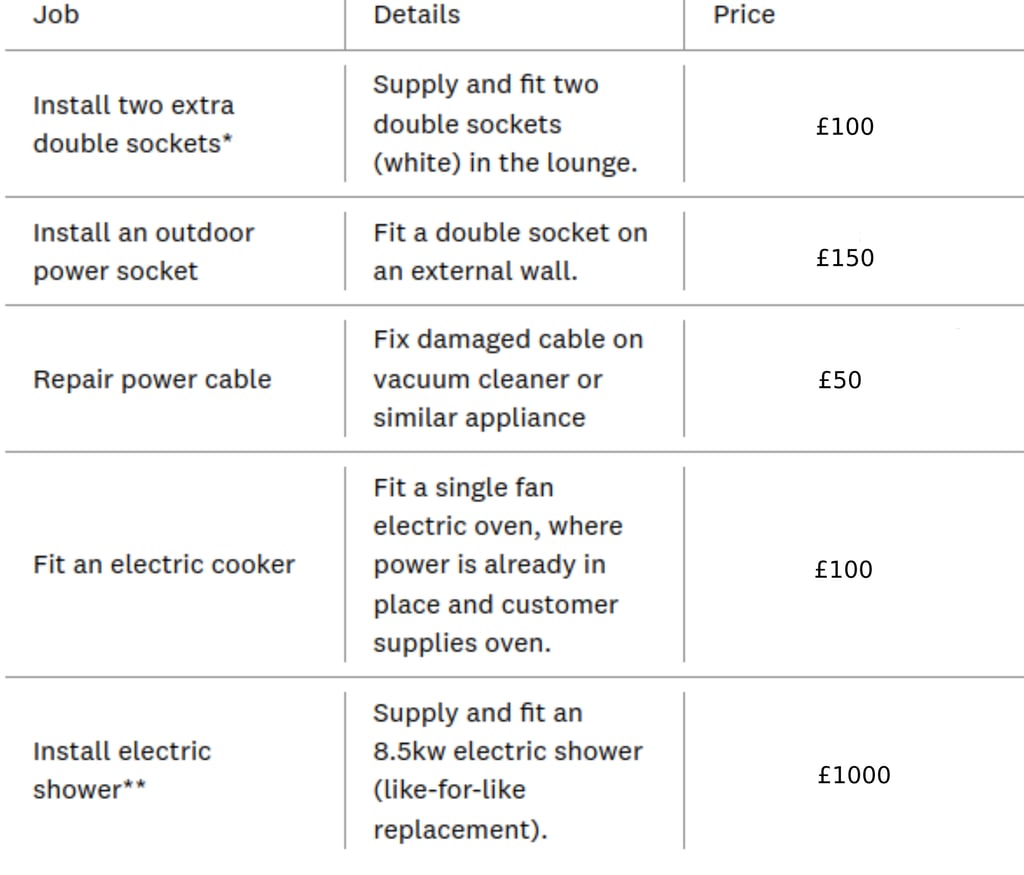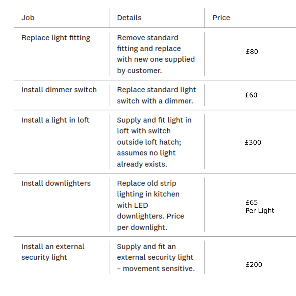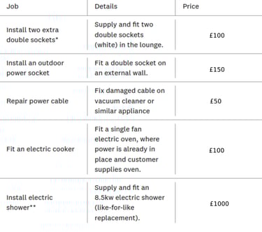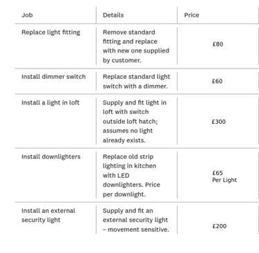 * Typical prices I charge for various electrical work. Actual quotes given for work depend on the requirements of the individual installation and therefore may be different from the prices shown.